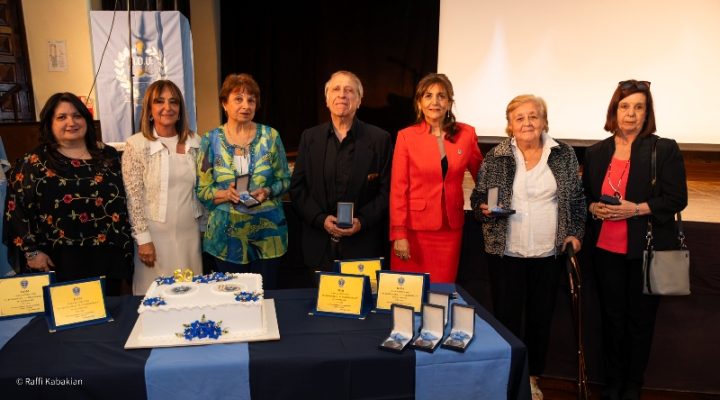 Uno de los momentos centrales del acto fue la entrega de plaquetas y medallas de reconocimiento. En primer término se distinguió a los descendientes de las familias Bodourian y Diarbekirian, en memoria de las señoras Arusiag Bodourian y Marta Diarbekirian, benefactoras fundamentales para la creación de la Casa de Descanso.