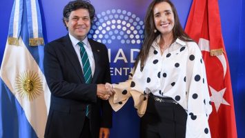 Süleyman Ömür Budak, embajador de Turquía en Argentina y Victoria Villarruel, vicepresidenta de la Nación. Foto: Santiago Pezzini/Comunicación Senado