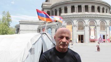 Anastas Israelian en el acampe frente a la plaza de la Ópera en Ereván, exigiendo mejores condiciones de vida para los desplazados de Artsaj, víctimas de la limpieza étnica de 2023 - Abril [...]