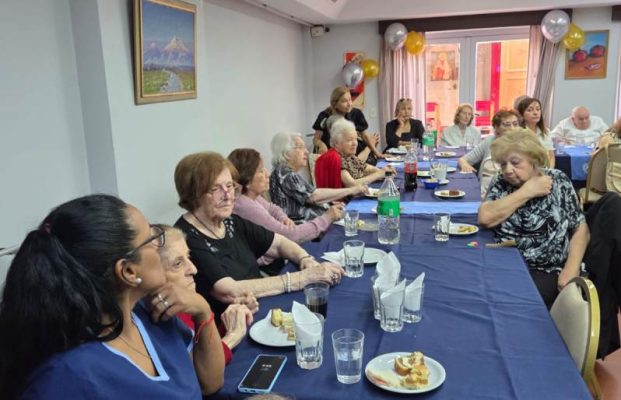 El pasado martes 16 de diciembre, la Casa de Descanso “Onnig Bodourian – Ohannés Diarbekirian” de HOM vivió una jornada colmada de emoción, recuerdos y agradecimiento, en el marco de la celebración de su cincuentenario, organizada por iniciativa de la Comisión Regional Sudamericana de HOM. El encuentro reunió a los abuelos residentes y al personal de la institución, junto a colaboradores, familiares y representantes de distintas filiales de la organización.
