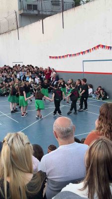 Hubo danzas de los tres niveles y un cierre conjunto protagonizado por las y los estudiantes de sala de cinco, sexto grado y sexto año. También cantó tercer grado y el coro Nor Arevakal de la Asociación Cultural Armenia.
