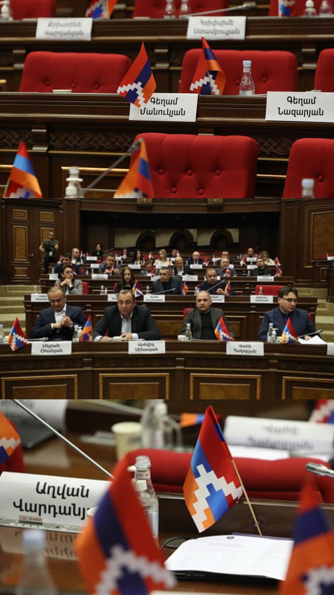 Ese mismo día, el diputado Seyran Ohanyan, líder de la facción parlamentaria Alianza Armenia, colocó una bandera de Artsaj en la Asamblea Nacional, mientras que toda la oposición puso banderas en sus puestos. Luego, Vahag Aleksanyan, secretario del partido oficialista Contrato Civil quitó la bandera de Artsaj, algo que produjo la ira en muchos de los presentes.