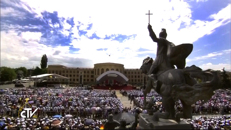 "Pero hay también otra memoria que se ha de custodiar: la memoria del pueblo. Los pueblos, en efecto, tienen una memoria, como las personas. Y la memoria de vuestro pueblo es muy antigua y valiosa", pidió el Pontífice ante casi 20 mil fieles católicos, en un país de mayoría apostólica pero considerada la "primera nación cristiana" por haber adoptado esa religión de manera oficial en el año 301.