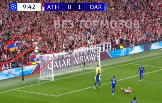 Durante el partido también se observaron banderas de Artsaj en las tribunas.