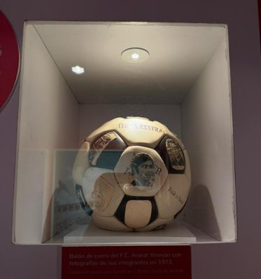 La iniciativa fue impulsada por Sonia Arakelian, quien presentó el proyecto ante el Consejo del museo. En ese marco, la exhibición incluye una pieza vinculada a la historia armenia: un balón del Ararat Ereván, correspondiente al equipo que en 1973 logró el histórico “doblete” al consagrarse campeón de la liga y la copa de la Unión Soviética, equipo en el que se destacó el histórico delantero y luego entrenador Nikita Simonyan, una de las figuras más emblemáticas del fútbol armenio.