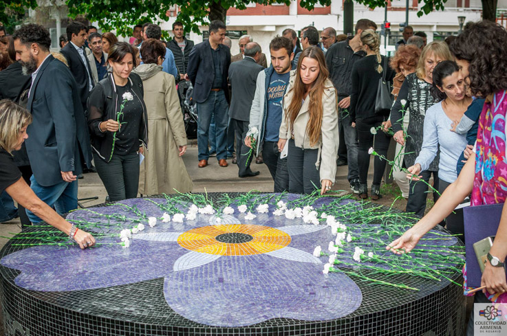Cerrando el acto, las locutoras invitaron a cada uno de los asistentes a realizar una ofrenda en silencio, decorando así el memorial "No me olvides" con un círculo de flores blancas. Flores blancas, que simbolizan un simple pero sentido homenaje a cada víctima. En círculo, como representación del renacer de los armenios.