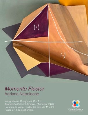 Desde el pasado 19 de agosto hasta el 14 de septiembre, entre las 11 y las 21hs se está presentando en la Asociación Cultural Armenia la muestra “Momento Flector” de la artista Adriana Napoleone.