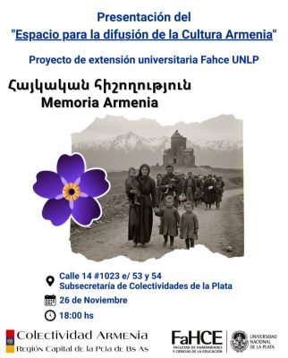 El 26 de noviembre, la ciudad de La Plata fue sede de la presentación del Espacio para la Difusión de la Cultura Armenia, una actividad de extensión universitaria que comenzará a dictarse en 2025 en la Facultad de Humanidades y Ciencias de la Educación de la Universidad Nacional de La Plata (UNLP). La iniciativa, que fue creada por la Colectividad Armenia Región Capital, fue presentada en la Subsecretaría de Colectividades del Municipio, a pocos metros del Jachkar emplazado en Plaza San Martín de esa ciudad.