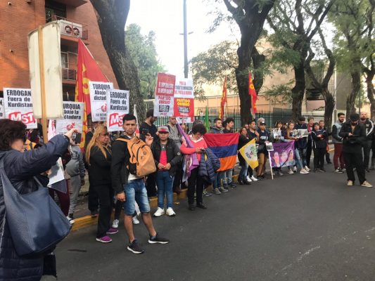 El lunes 26 de agosto se realizó una movilización hacia la Embajada de Turquía en Argentina en protesta de la decisión del presidente turco Recep Tayyip Erdogan de destituir a tres alcaldes de provincias opositoras a su régimen.