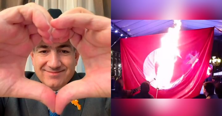 La quema de la bandera de Turquía se realiza en rechazo al rol del Estado que planificó y ejecutó el Genocidio Armenio de 1915-1923 con un saldo de 1.500.000 víctimas, mantiene hasta la actualidad una política de negacionismo del crimen contra la humanidad y también apoyó a Azerbaiyán en las dos guerras de Artsaj de 1988-1994 y 2020, el bloqueo genocida y la limpieza étnica de 2023 que culminó con más de 120.000 armenios desplazados por la fuerza.
