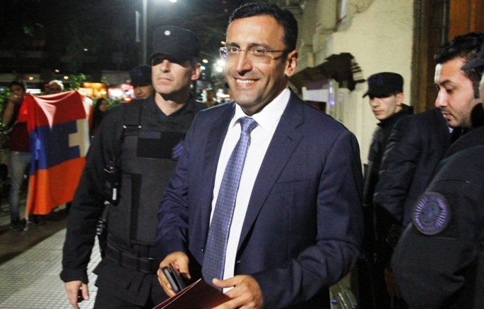Integrantes de la comunidad armenia de Buenos Aires realizaron una protesta el 14 de agosto durante un concierto organizado por la Embajada de Azerbaiyán en el Teatro del Globo de esa ciudad en el marco del nacimiento del expresidente Heydar Aliyev, padre del actual presidente azerbaiyano Ilham Aliyev, y del 30° aniversario de las relaciones diplomáticas entre Azerbaiyán y Argentina.