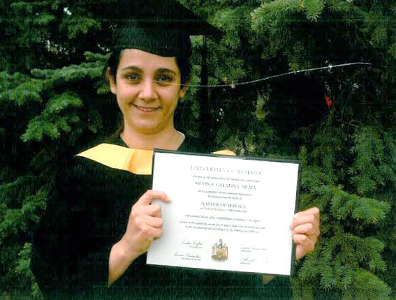 Recientemente finalizó su segunda residencia en Salud Pública y Medicina Preventiva en la Universidad de Calgary, siendo reconocida como fellow (médica especialista) del Royal College of Physicians of Canada.